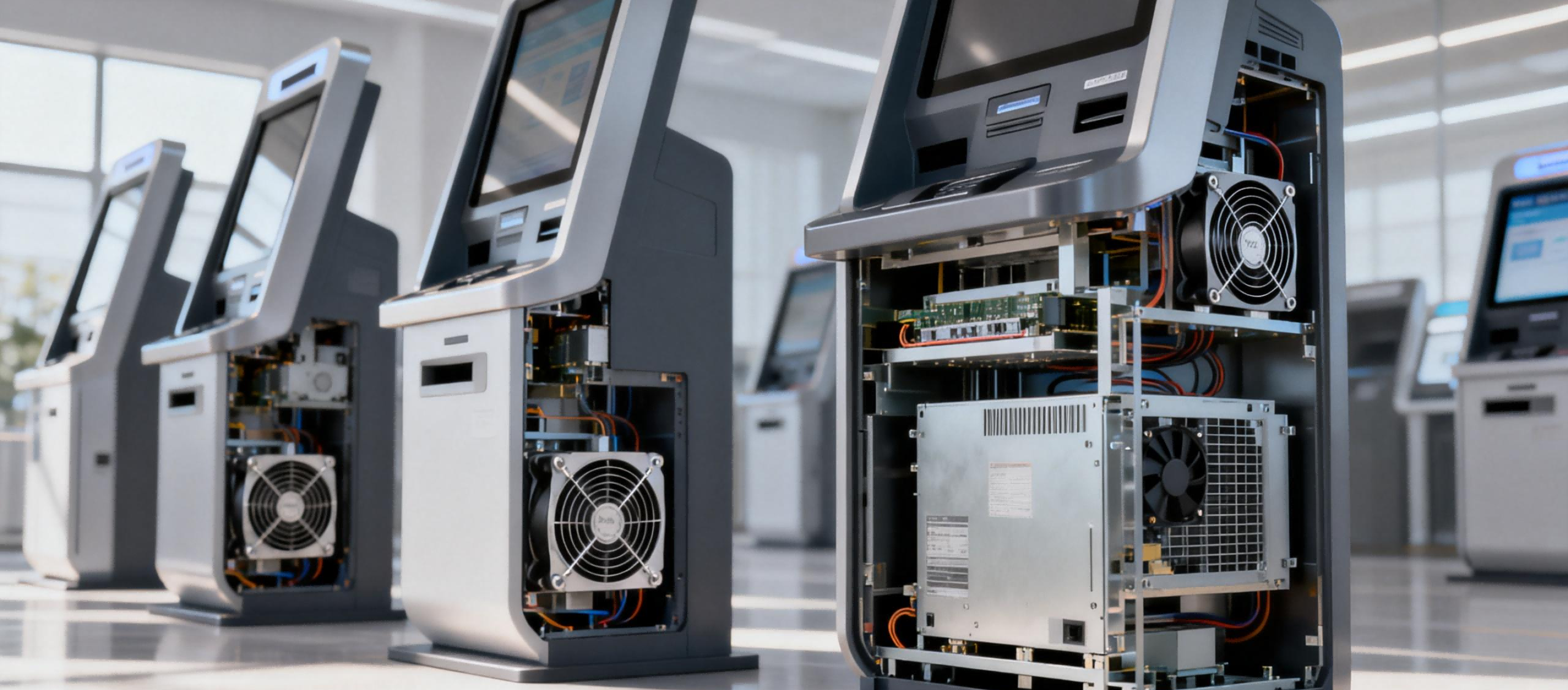 Тепловые характеристики в киосках самообслуживания часто упрощены. В действительности, непрерывная работа генерирует совокупное тепло от дисплеев, вычислительных блоков, источников питания и периферийных устройств. Без хорошо спланированной внутренней структуры локальный перегрев может произойти, даже если отдельные компоненты соответствуют лабораторным стандартам — проблема, часто наблюдаемая при развертывании киосков банковского самообслуживания, которые работают круглосуточно и без выходных с высокой плотностью транзакций.
